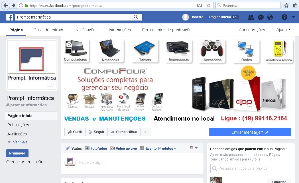 Informamos que a partir de hoje, divulgaremos nossos produtos e serviços através do Facebook. A intenção é criar um canal de comunicação mais dinâmico com nossos clientes e publicar também dicas, notícias e novidades sobre tecnologia. Com isso, a opção de notícias e avisos disponível neste site, não será mais utilizada.